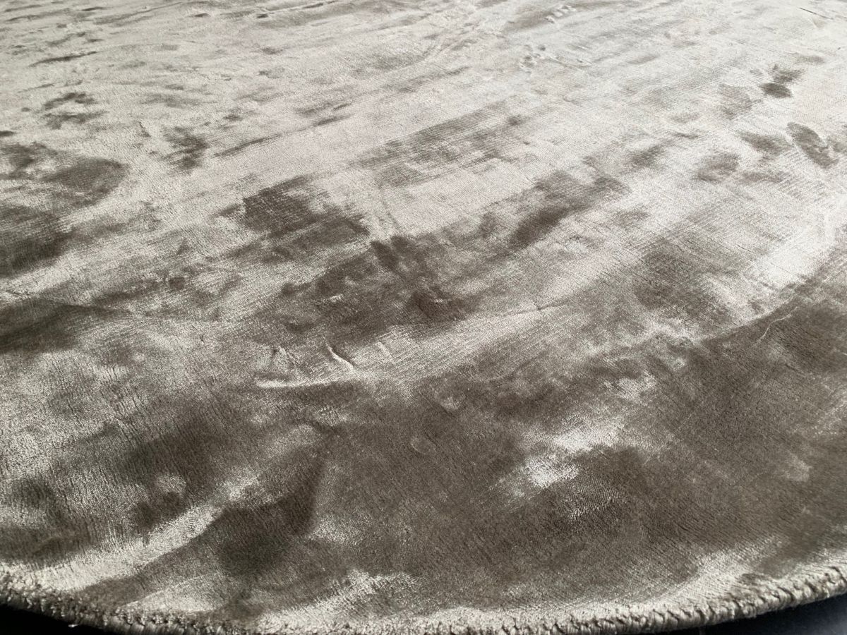 This rug is made of tencel and has a silky feel. The rug has a short pile with a beautiful glow on the rug when lit. From daylight to mood lighting in the evening, the rug carries the light with its subtle sheen. The rug has a refined border finish of yarn in the colour scheme of the rug.