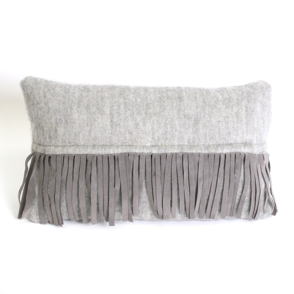 Kussen BOHO wol franje suedine licht grijs 50x30cm